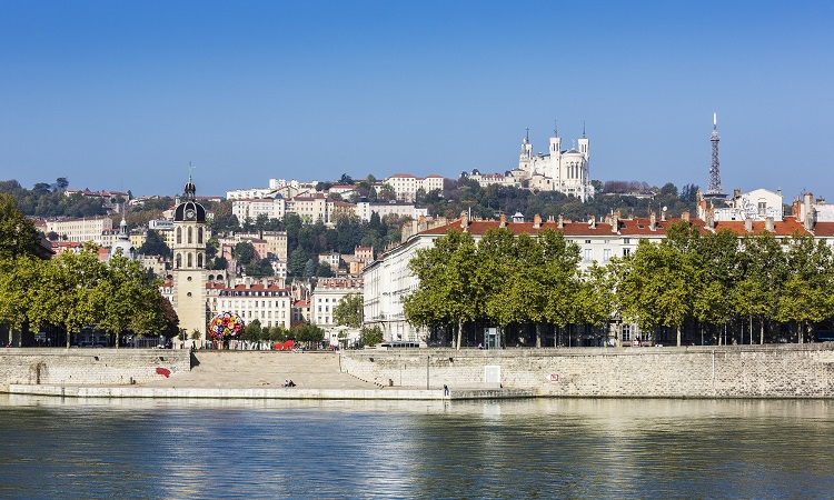 Le centre de Lyon vue des quais du Rhône
